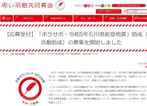 ◇対象団体は、被災地に設置された災害ボランティアセンターのボランティア募集地域外からの応募にあたっては、被災地域の状況や行政・関連機関等が公表するボランティア活動に対する注意喚起、意向を踏まえて、また「被災地の自治体または社会福祉協議会、その他ボラサポ運営委員会が認める公共的機関等からの支援要請に基づく活動であること」が要件になっています。