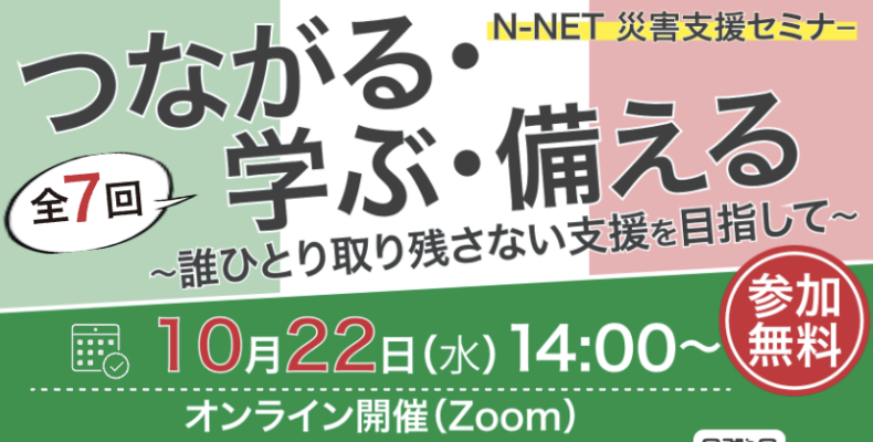 長野県災害時支援ネットワーク(N-NET)では、誰ひとり取り残さない支援を目指して、全7回のセミナーを開催しています。