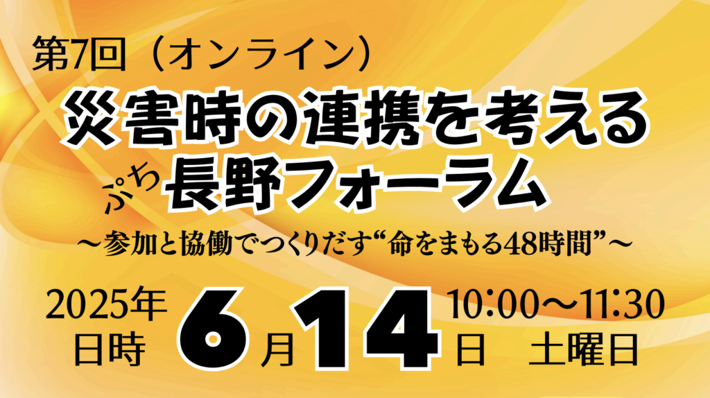 【終了しました】第7回(オンライン開催)災害時の連携を考える ぷち長野フォーラム〜参加と協働でつくりだす“命をまもる48時間”〜