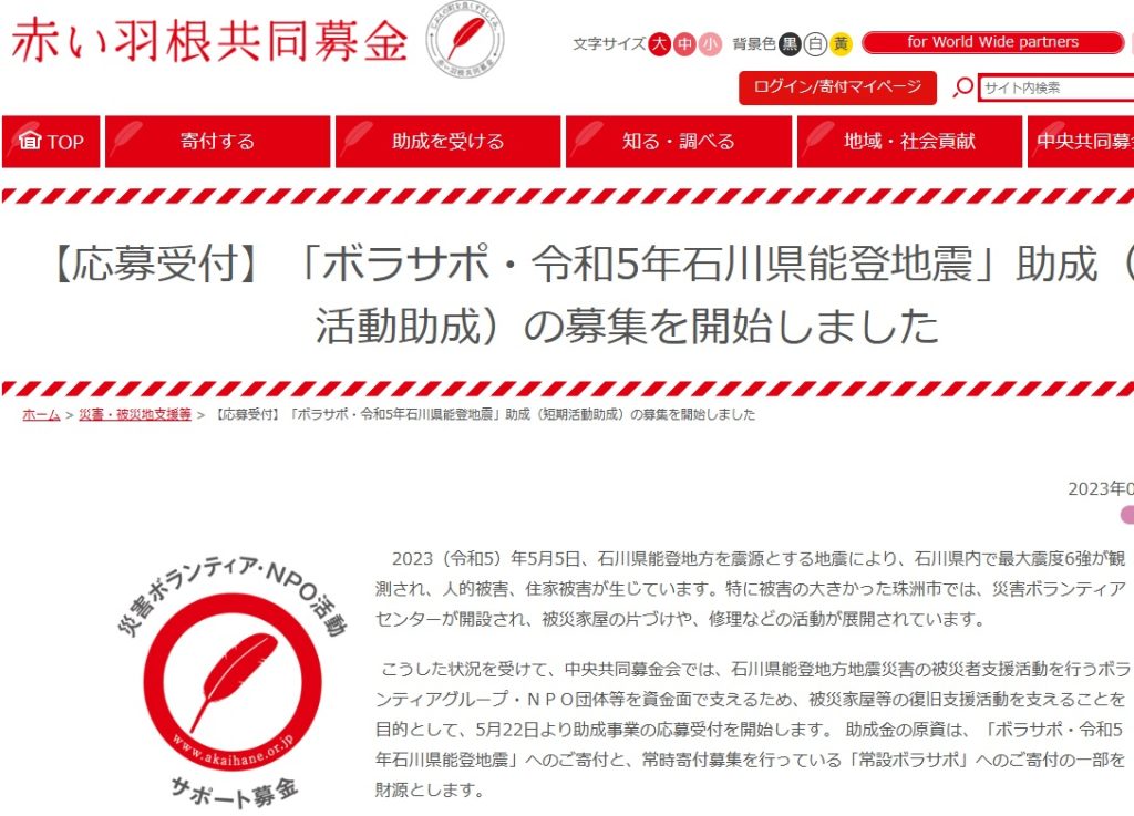 【助成金情報】ボラサポ・令和5年石川県能登地震助成