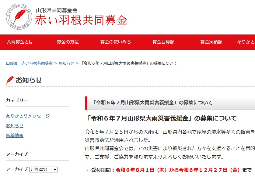 【災害支援】令和6年7月山形県大雨災害義援金