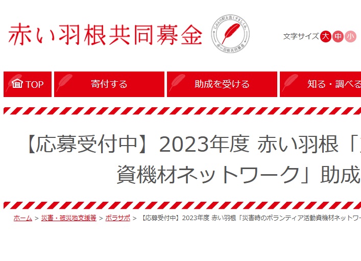 【助成金情報】赤い羽根「災害時のボランティア活動資機材ネットワーク」助成