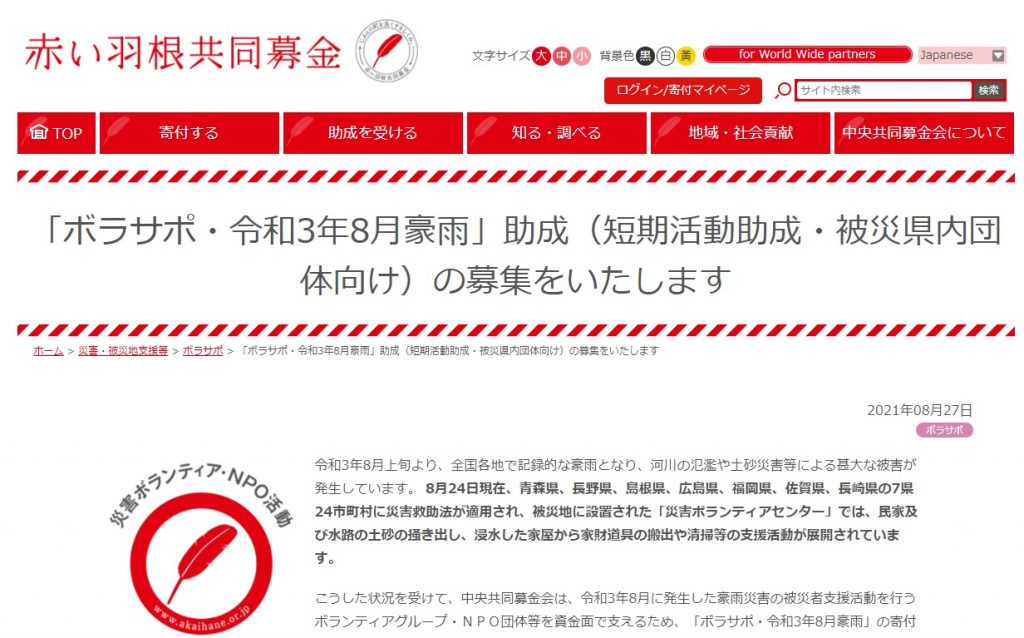 【支援情報】「ボラサポ・令和3年8月豪雨」助成を募集