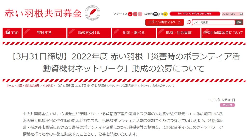 中央共同募金会は、2022年度「災害時のボランティア活動資機材ネットワーク」助成... -